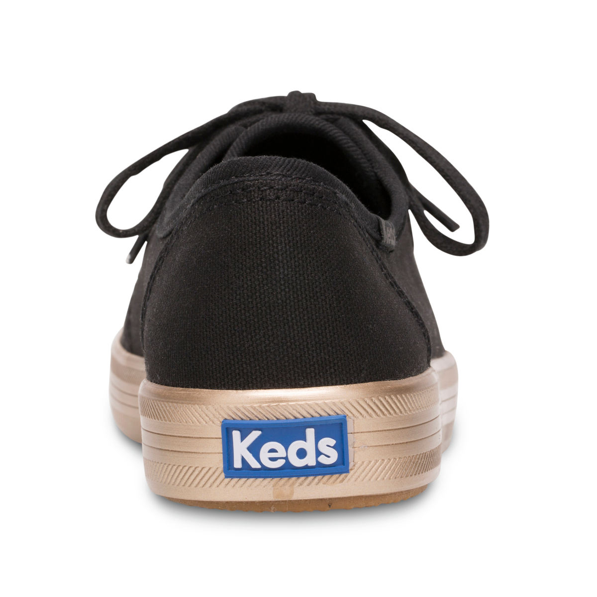 Μία μοντέρνα ματιά στο διαχρονικό αγαπημένο σχέδιο: το Keds Kickstart ακολουθεί την μόδα των μεταλλικών στοιχείων με την γυαλιστερή του σόλα, και προσθέτει στο κλασσικό look του παπουτσιού για τέννις μια πιο θηλυκή και περιποιημένη διάθεση.